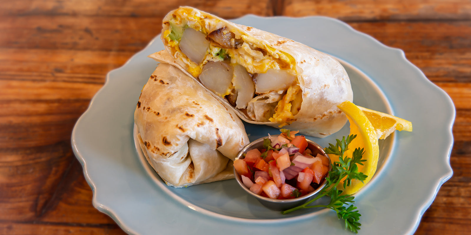 With House-made Pico de Gallo, Eggs,Potatoes, Jack & Cheddar, Avocado