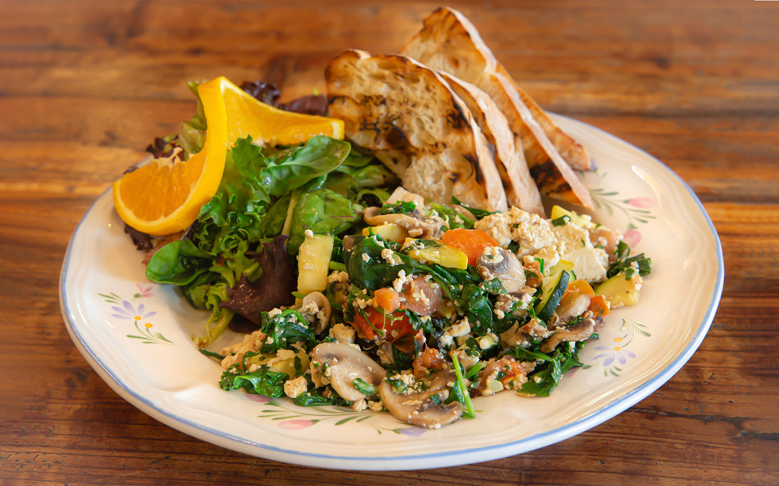 Scrambled Tofu, Mushrooms, Organic Kale, Organic Spinach, Zuchini, Broccoli, Tomato