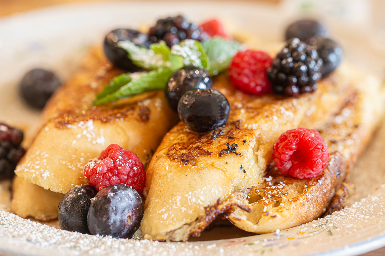 Served with pure maple syrup, butter, powdered sugar and fresh raspberries, blueberries & blackberries